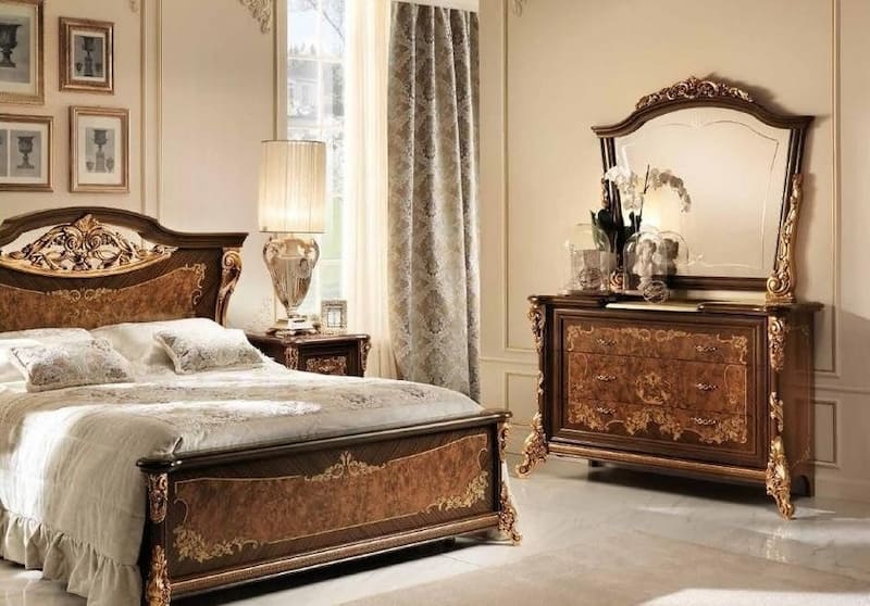 سرویس خواب شامل: تخت خواب، میز آرایش، کمد و کنسول است.