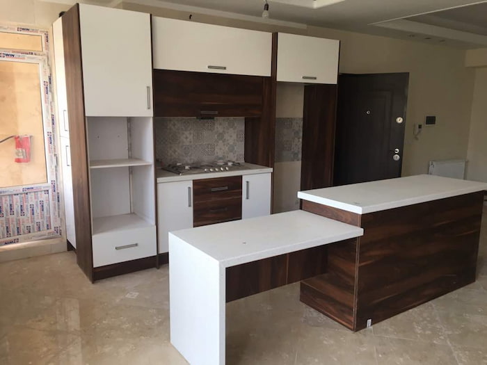 اکثر افرادی که به صورت مجردی زندگی می کنند و یا مکان آنها کوچک می باشد، از کابینت حاضری که از جنس ام دی اف و دستگیره کابینت ممبران ساخته می شود استفاده می کنند که نصب راحت و بی دردسری نیز دارد.