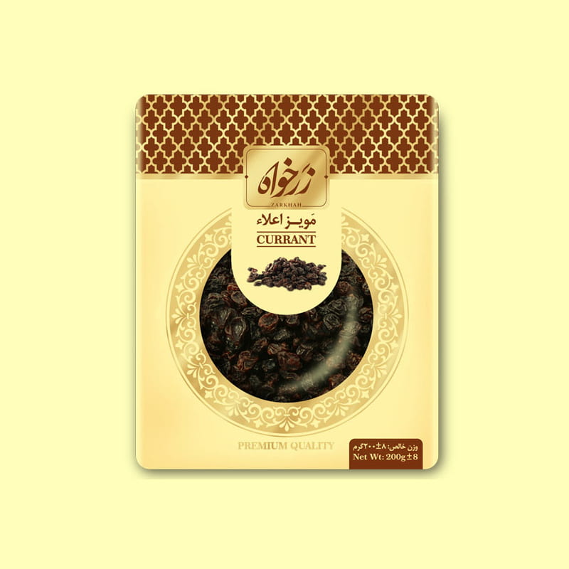 مویز زرخواه در حجم 200، 250 و 350 گرمی به بازار عرضه می شود.