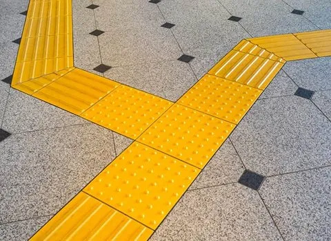اگر به پیاده روها دقت کرده باشید متوجه تفاوت رنگ در ببین موزاییکهایی که برای پیاده رو استفاده شده است می شوید و این به دلیل وجود موزاییک پیاده رو برای افراد نابینا می باشد.