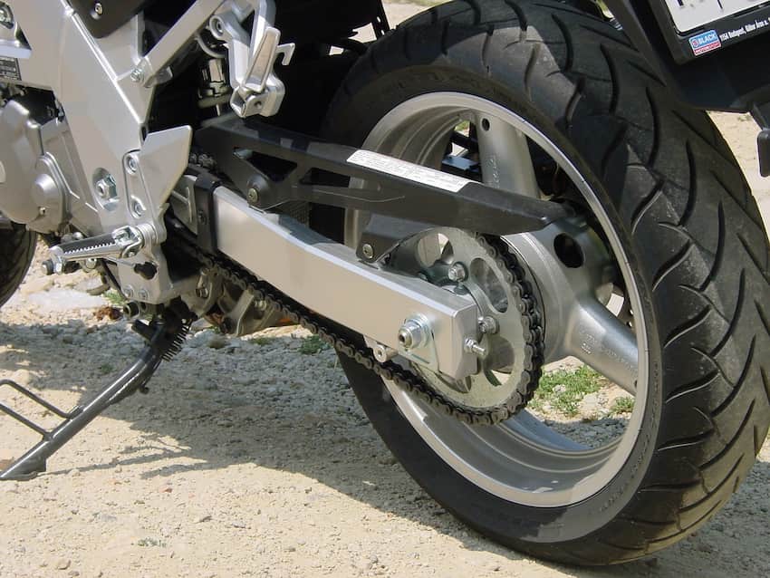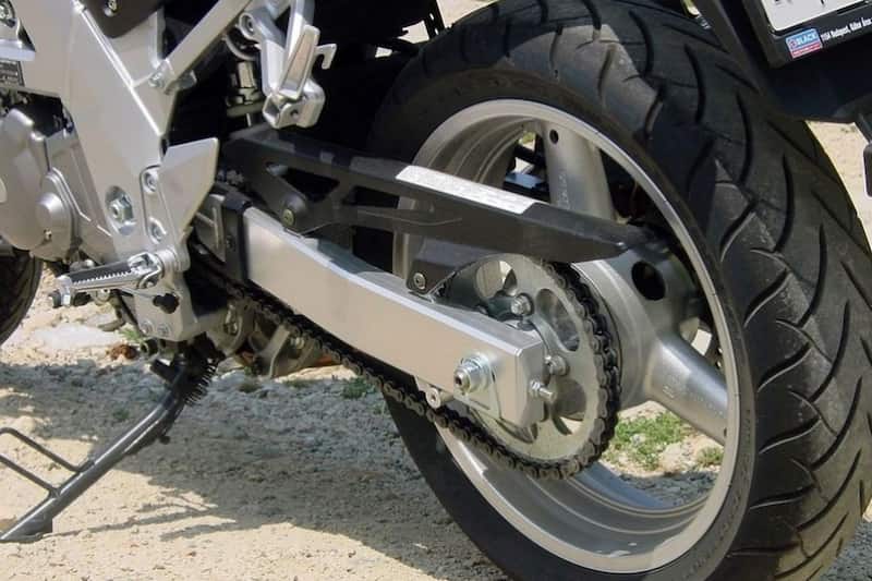 محل دقیق قرار گرفتن چرخ موتور سیکلت بین چرخ عقب و دو چرخ دنده گیربکس می باشد و زمانی که چرخ دنده ها حرکت می کنند، حرکتهای زنجیر هدایت می شود.
