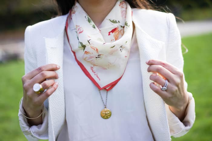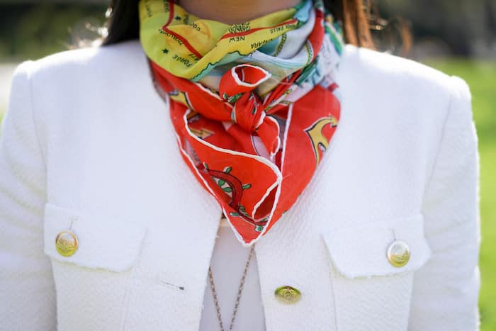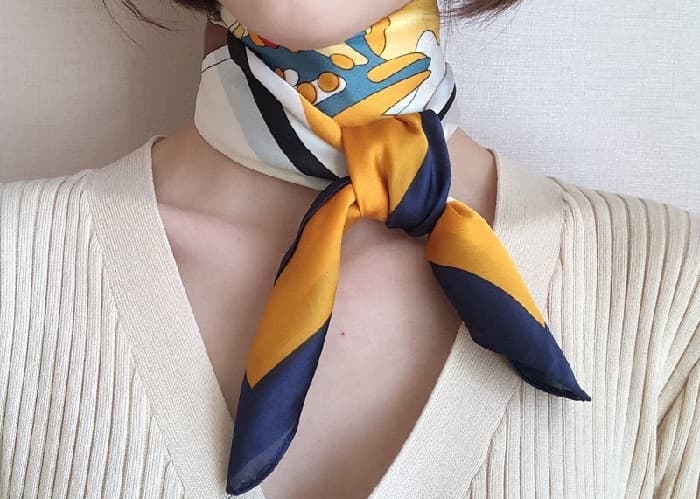 - استفاده از روسری کوچک به عنوان دستمال سرتان که گره آن نیز دقیقا در پشت واقع می شود.