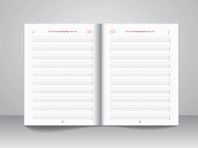 دفتر پنج خط مختص هنر خوشنویسی را می توانید برای انجام تمرینات خطوطی مانند نستعلیق و شکسته به کار برید و البته این دفتر مناسب تمام افراد در گروه های سنی می باشد.