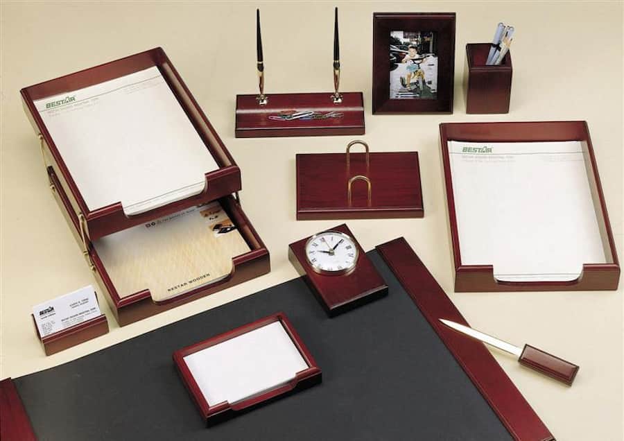یکی از اکسسوریهای مهم در انواع میزهای اداری جای کاغذ است که جای کاغذ روی میز اداری در طرحها و اندازه های مختلف می باشد که از جنسهای متعدد بوده و با استفاده از متریال مختلف مانند چرم اشبالت طبیعی و چوب ساخته می شود که نمونه چرمی این محصولات از نمونه های لوکس جای کاغذ می باشد که می تواند فضای شیک و زیبا را بر روی میز کار ایجاد کند و به کاغذهای نامرتب روی میز نظم ببخشد، ضمن این که این محصول می تواند در هنگام قرار ملاقات با مشتریان تاثیر مثبتی بر روی آنان بگذارد.