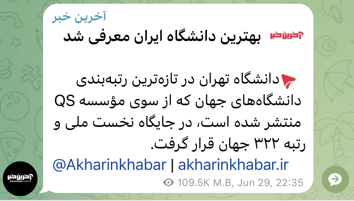 جالب است بدانید بهترین دانشگاه ایران در تازهترین رتبهبندی جهانی، جایگاهی بهتر از ۳۲۲ ندارد.