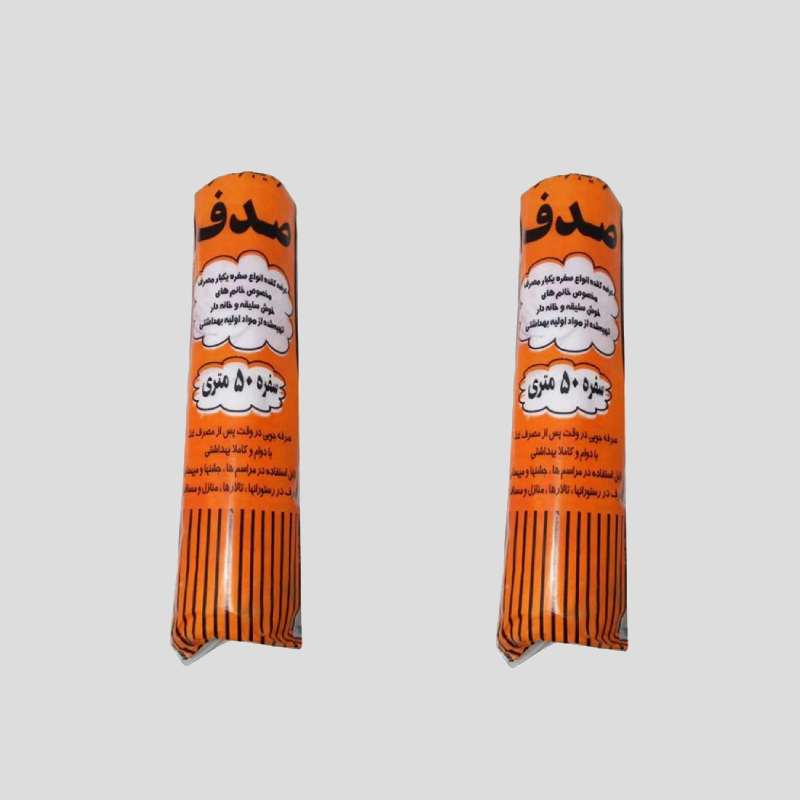 جنس سفره یکبار مصرف کاغذی و نایلونی می باشد. متراژ آن 25 متر می باشد.