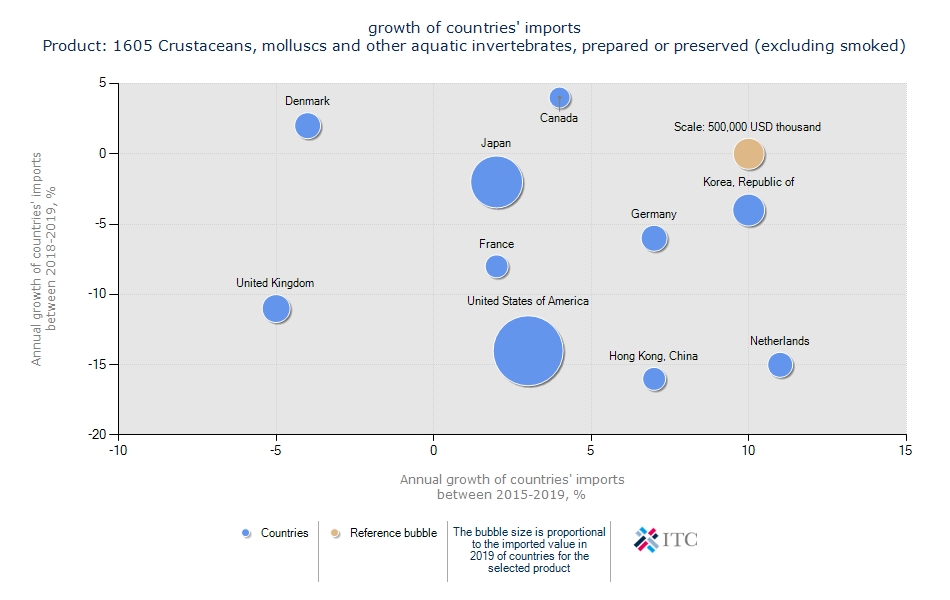کشورهای دارای رشد در واردات صدف دریایی