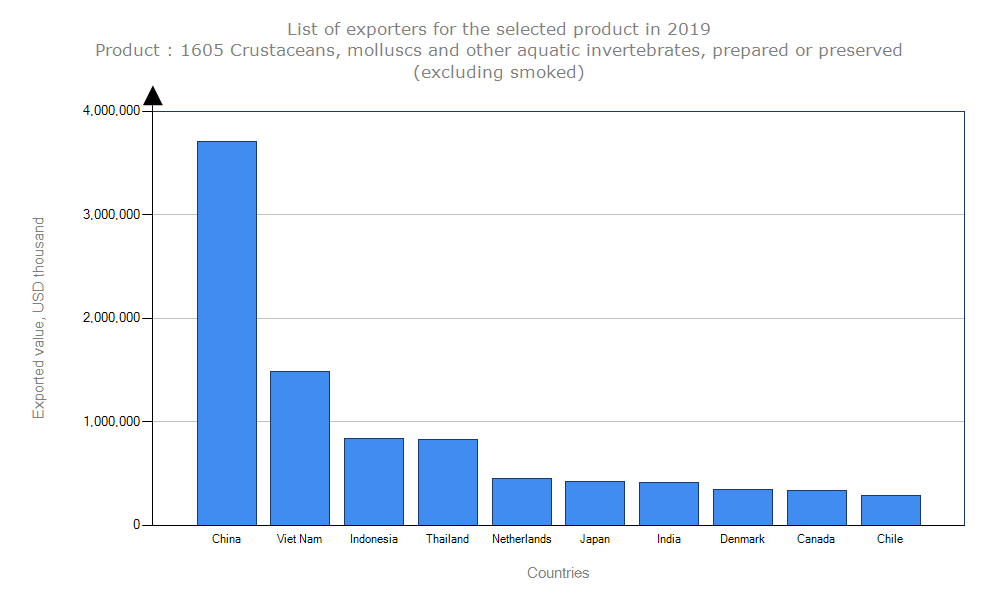اما اختلاف کشورهای بعدی با این صادرکننده زیاد نیست و به ترتیب اندونزی با ۷ درصد، تایلند با ۷ درصد و هلند نیز با ۴ درصد در رتبه های بعدی قرار دارند. در مقابل آمریکا، ژاپن و کره جنوبی سه کشور اول در واردات صدف دریایی هستند.