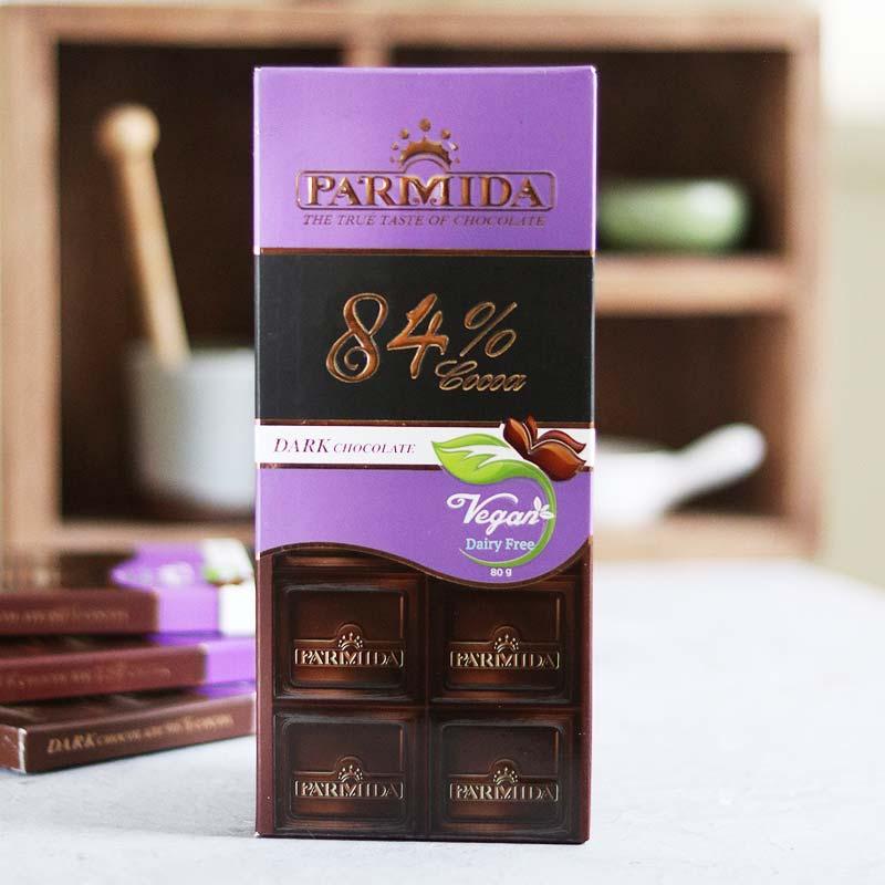 شکلات پارمیدا با درصد کاکائوی 84 درصد بسیار مقوی است.