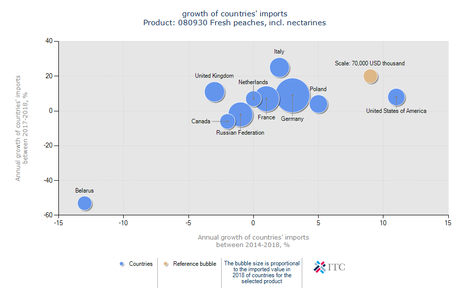 کشورهای دارای رشد در واردات هلو