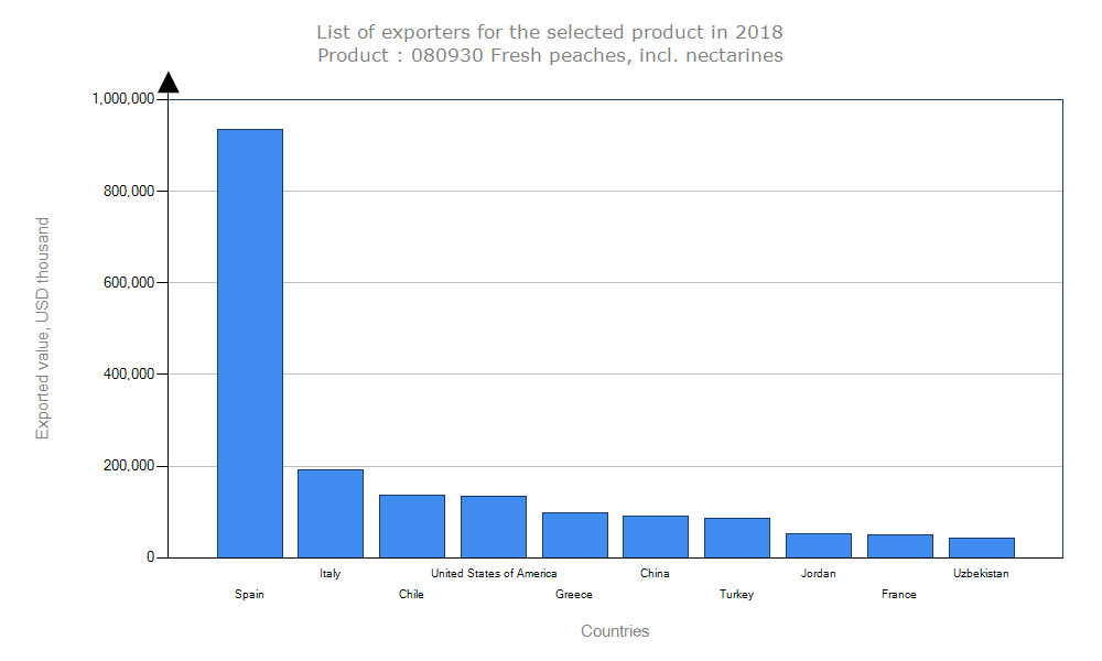 میانگین فاصله از کشور وارد کننده: ۲,۵۲۹ KM آمار واردات هلو هدف شناخت متقاضیان و پتانسیل ها در بازار جهانی است.