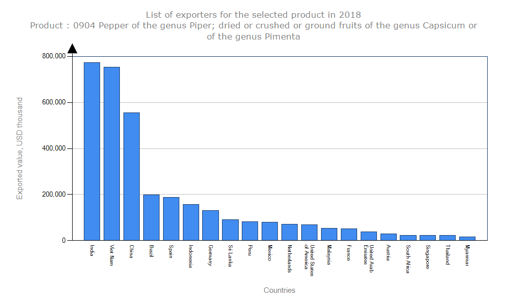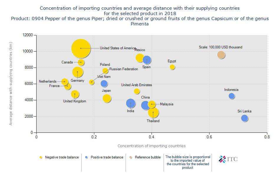 میانگین فاصله از کشور وارد کننده: ۵,۴۴۳ KM آمار واردات فلفل هدف شناخت متقاضیان و پتانسیل ها در بازار جهانی است. بنظر شما چرا صادرات فلفل در سال های اخیر افت و کاهش داشته است؟