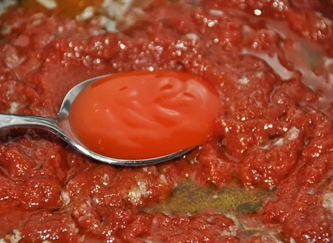 تا زمانیکه گوجه ها آب داشته باشد روی حرارت میجوشند تا موادی خمیری مانند به دست بیاید.