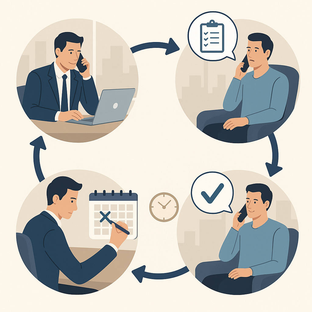 پیش از هر تماس، باید بدانید که می خواهید در این مرحله چه هدفی را محقق کنید: دریافت تأیید، تعیین جلسه حضوری، پاسخ به سؤال خاص، یا نهایی کردن فروش؟