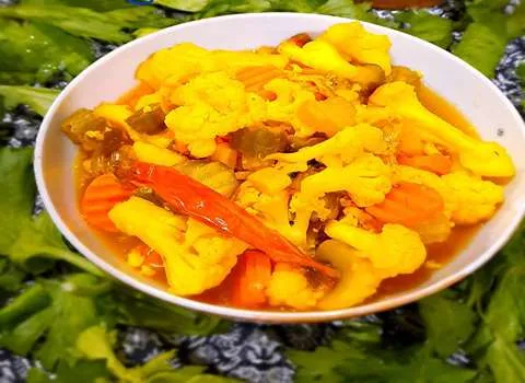 ترشی گل کلم مخلوط زرد از انواع ترشیجات است که علاوه بر گل کلم شامل برخی از سبزیجات دیگر نیز می گردد و بسیار خوش طعم است.