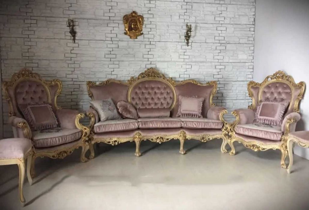 مبل کلاسیک صورتی طلایی