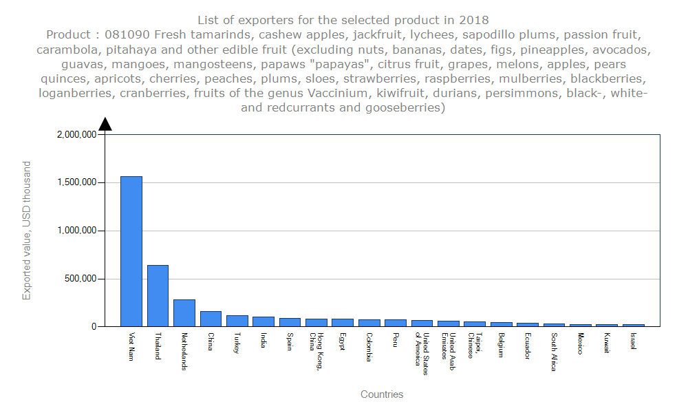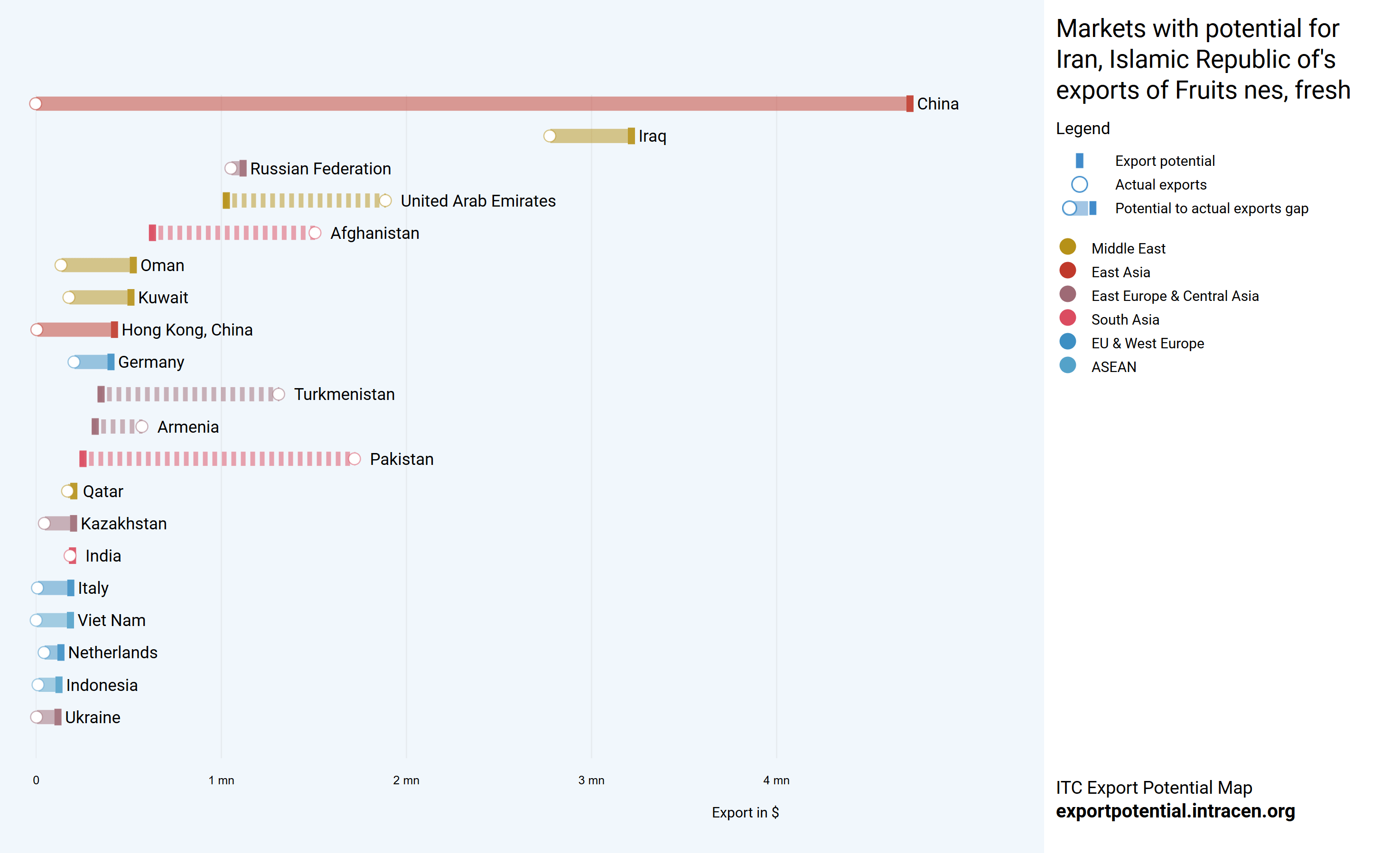 بازار چین بیشترین ظرفیت تقاضا را برای کالای ذکر شده دارد. چین بیشترین تفاوت بین پتانسیل صادرات و صادرات واقعی را از نظر ارزش نشان می دهد، ظرفیت باقیمانده صادرات به ارزش ۴٫۷ میلیون دلار است.