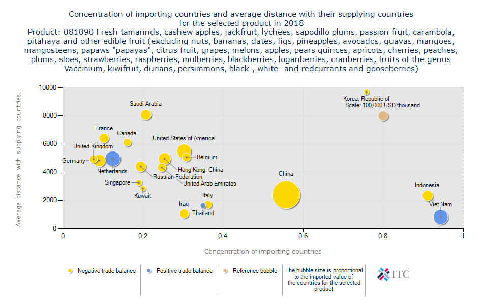 هرچه دایره ها به سمت بالاتر باشند گویای این است که فاصله ی کشور واردکننده تا محل تامین آن بیشتر است به عبارتی شعاع فاصله ای که میتوانیم در آن فعالیت کنیم بیشتر است.