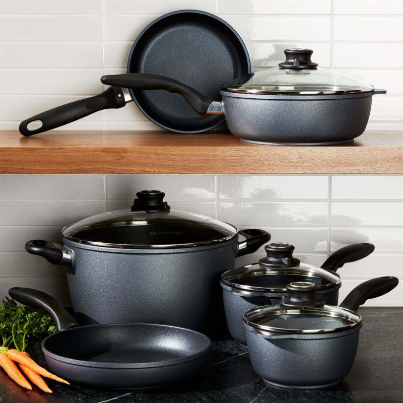 سرویس قابلمه 22 پارچه، از 5 عدد قابلمه به همراه دو تابه مختلف موجود است.