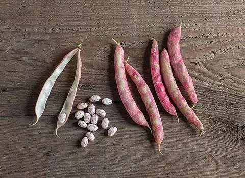 میوه لوبیا صورتی باریک و غلاف مانند است و این میوه دارای استخوان میانی است که درون آن دانههای کشمشی قرار دارند که بعداً برای کاشت استفاده میشوند.