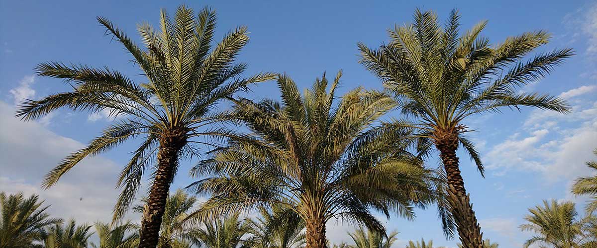 نخل خرما در مناطق گرم و خشک رشد می کند و و به آب زیادی نیاز ندارد. برای چیدن خوشه های خرما، فردی با طناب به دور نخل پیچیده شده به بالای نخل می رود و افرادی پایین نخل ایستاده و پارچه وسیعی را می گسترانند و آن فرد بالای درخت با قمه و چاقویی ساقه خوشه را بریده، خوشه حاوی 100 الی 200 دانه خرمایی به پایین پرتاب می شود و روی پارچه قرار می گیرند.
