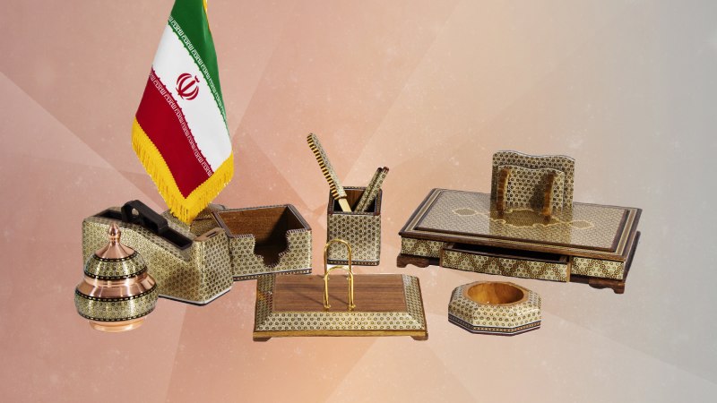 ست رومیزی اداری خاتم کاری از جمله محصولاتی است که کارایی زیادی در دفاتر امکان اداری دارد و دارای طرح ها و نوع های مختلفی است.