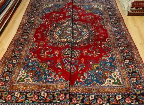 فرش دست بافت ایران در مرکز ایران از یک الگوی بسیار خوب طراحی شده و رنگارنگ بوده و با رنگ سبز مدیترانه ای احاطه شده توسط رنگ آبنوس پر رنگ در زمینه و پر از گلبرگ ریز و پیچکهای زیبای در هم تنیده و گلهای سبز، قرمز، قهوه ای، آبی، بژ از رنگهای به کار رفته در این فرش هستند و ابریشم و نخ با کیفیت بالا بر روی تاروپود آن ساخته شده است در اندازه های مختلفی تولید می شود که اندازه 1*2 و 2*3 محبوبیت بیشتری برای خرید و فروش دارد.