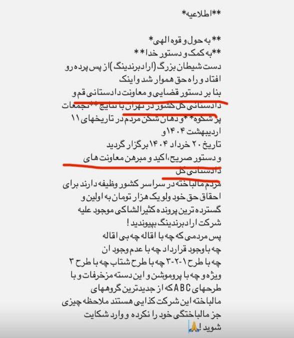 ۷. گوشه ای از مستندات خبائث علیه بزرگان آراد و تمام کارمندان و تاجران آرادی