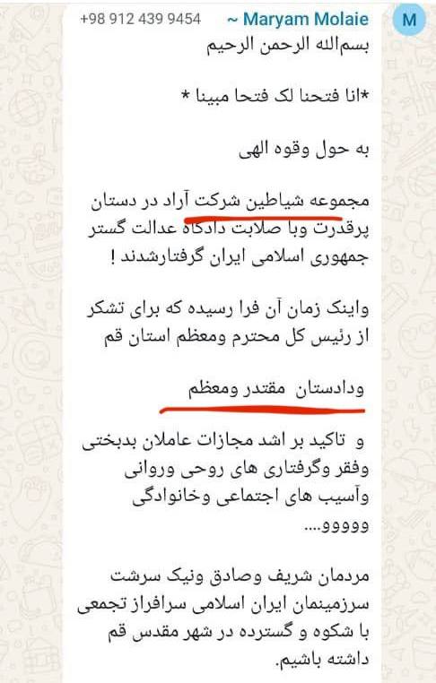 وقتی نگاه مسئولین بعد از اجتماع سه شنبه ۱۱ شهریور ساعت ۹ صبح مقابل استانداری قم متفاوت شد و شکایت دسته جمعی ما آرادی ها از خبائث به جریان افتاد هر کسی که رضایت نداده باشد و پایش را از پرونده بیرون نکشیده باشد جز لیست شکایت های چند صد و هزار نفره ما خواهد بود.