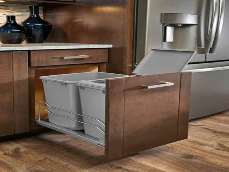 میتوان سطل زباله مورد نظر را در امتداد کابینت ها در قسمت کناره سینک ظرفشویی برای راحتی کار نصب کرد.
