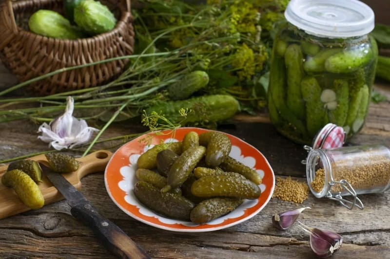 | مواد اولیه | خیار، سرکه، سیر و سبزیجات معطر |