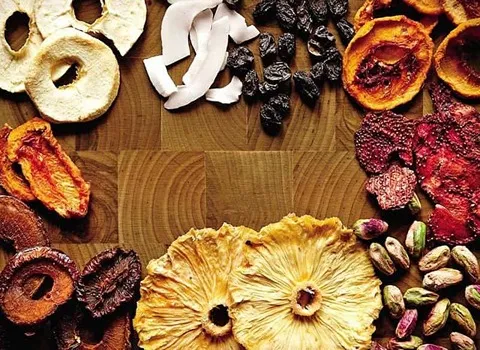 همچنین میوه های مختلفی مانند پرتقال، هلو، گلابی و غیره برای خشک شدن در این محصولات استفاده می شوند.