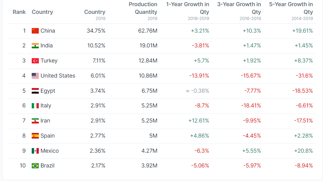 بزرگ ترین تولید کنندگان گوجه فرنگی در جهان