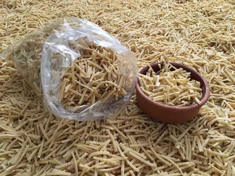 در صورتی که به کمک دستگاه های مناسب، آرد گندم را به همراه موادی از جمله نمک مخلوط نموده و سپس به شکل رشته های باریک در بیاوریم، مواد اولیه تهیه رشته پلویی حاصل خواهد شد.