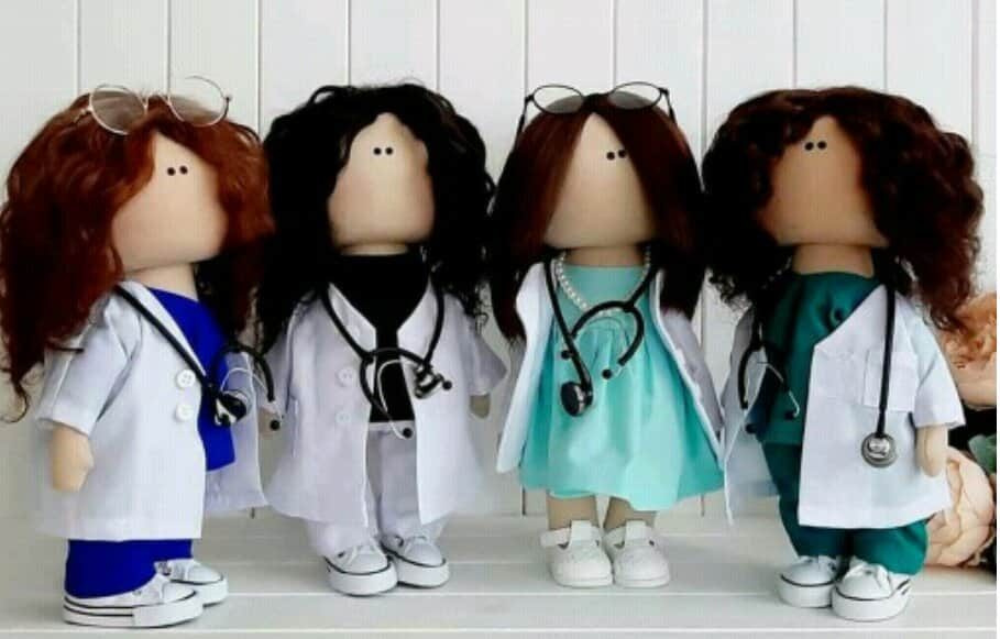 در طراحی این عروسک ها از پیراهن و کلاه سفید مخصوص پزشکی استفاده شده است که بر زیبایی و جذابیت این عروسک ها هرچه بیشتر می افزاید.