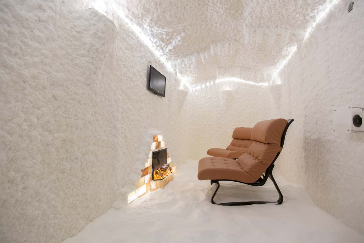 ذرات نمک در سایزهای بسیار ریزی به وسیله دستگاه هالوژنراتور در هوا معلق و در فضای این اتاق پراکنده می شود که برای بهبود بیماریهای تنفسی بسیار مفید می باشد.
