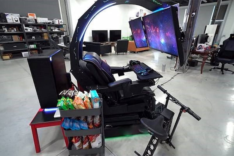 یک میز مناسب که بر روی آن سیستم بازی قرار دارد و در پشت آن یک صندلی گیمینگ قرار داده شده است که انتظار شما را می کشد.