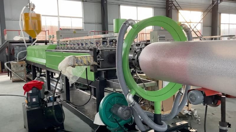 گرانولهای لاستیکی از پیش تهیه شده در دستگاه اکسترودر توسط ناحیه تغذیه وبه کمک نیرو حرکتی و حرارتی وارد دستگاه می شوند و در ناحیه فشردگی به صورت خمیده و نواری به بیرون دستگاه هدایت می شود و آماده برش و اندازه گیری می شوند.