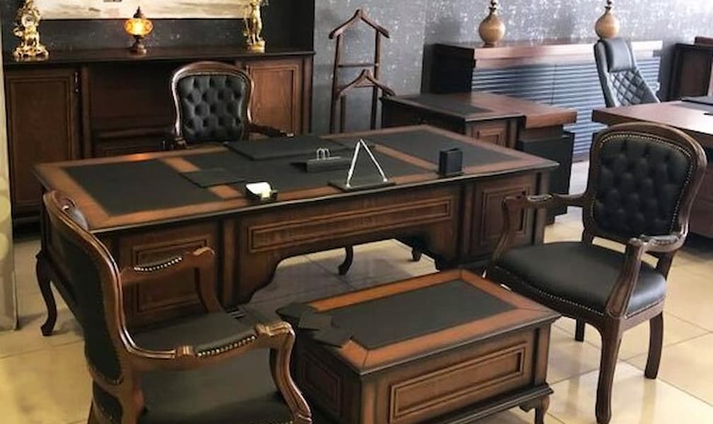 جهت انتخاب بهترین مدلها باید به دکوراسیون خود دقت کرد و مبلی را انتخاب کرد که با سایر اجزای محیط کاری همخوانی داشته باشد آنها بسیار راحت هستند و انواع سبکهای قدیمی و کلاسیک دارای میزهای بزرگ و چوبی هستند و وزن بالاتری دارند، دوام و ماندگاری مبلهای مختلف با توجه به متریالی که در تولید آنها به کار برده شده است، برآورد می گردد، مبلهای اداری با جنسهای زیر تولید می شوند:
