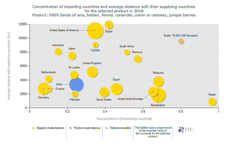 هرچه دایره ها به سمت بالاتر باشند گویای این است که فاصله ی کشور واردکننده تا محل تامین آن بیشتر است به عبارتی شعاع فاصله ای که می توانیم در آن فعالیت کنیم بیشتر است.