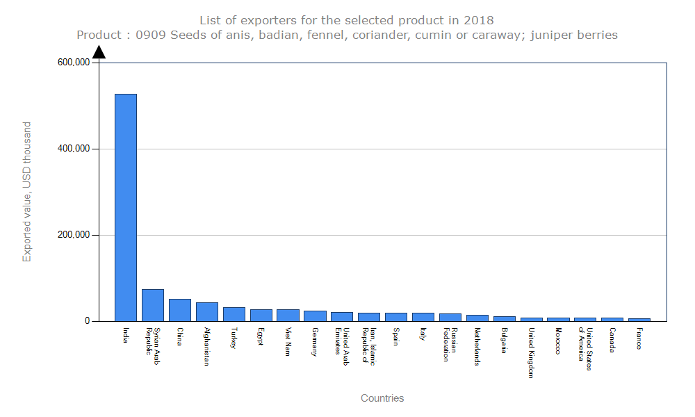 دانه های گیاهی در گمرک جهانی با کد تعرفه (HS Code) به شماره ۰۹۰۹ شناخته می شود. این کد شامل گروه تخم رازیانه، تخم بادیان، تخم مرزه، تخم و بذر گشنیز، زیره سبز، عرق زیره سیاه؛ تخم سرو کوهی می باشد.