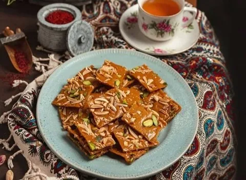 به میزان دلخواه برش دهید و بعد آن را در یخچال قرار بدهید تا سرد و سفت شود وقتی سفت شد از یخچال خارج شد می توانید روی آن را با خلال پسته تزیین کنید و آن را در یک ظرف بریزید و با نوشیدنی دلخواه خود بخورید البته در هنگام قرار دادن در یخچال باید دمای یخچال را تنظیم کنید تا بیش از حد سفت نشود.