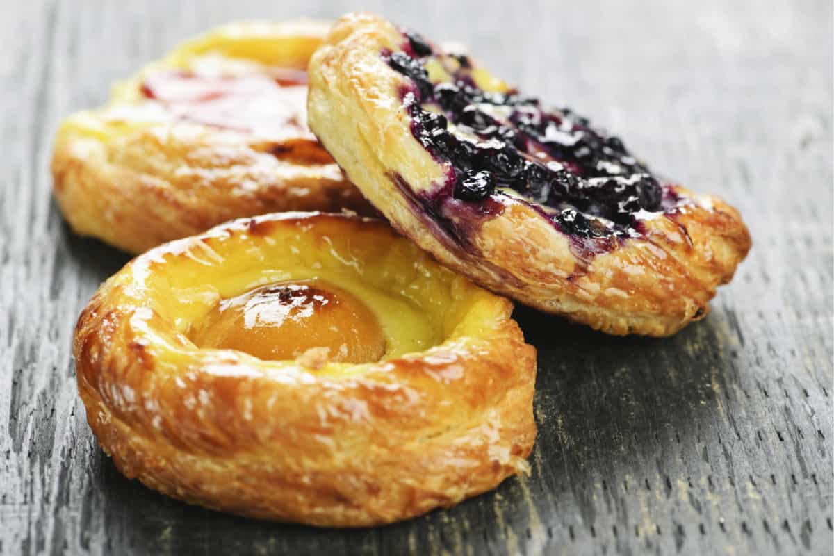 در دستورالعمل و طرز تهیه شیرینی دانمارکی برای طلایی شدن رویه آن بهتر است از زرده تخم مرغ استفاده کنید. در این شیرینی ماده ای به نام کربوهیدرات وجود دارد در واقع هر شیرینی یا مواد غذایی که از نشاسته ذرت تهیه می شوند دارای کربوهیدرات هستند.