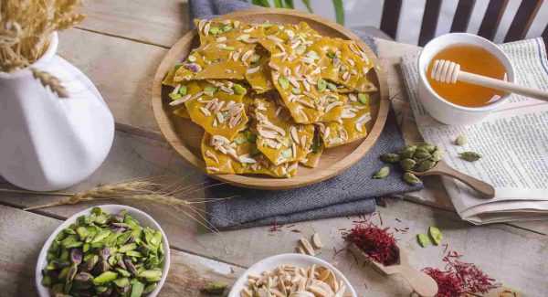 این شیرینیها از عسل و شکر و انواع مغزها و زعفران و بادام هندی تهیه و تولید می شود و مخصوص شهر اصفهان است که می توانید به عنوان یک میان وعده مفید و تاثیر گذار مورد استفاده قرار گیرد.