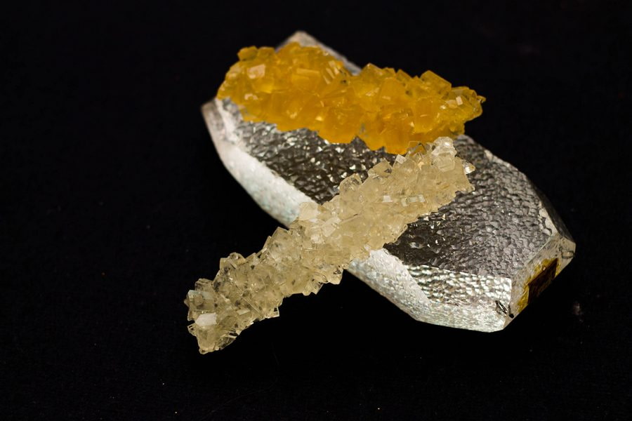 نبات از قند و شکر اشباع شده در آب تولید میشود و شکل آن به صورت بلوری است.