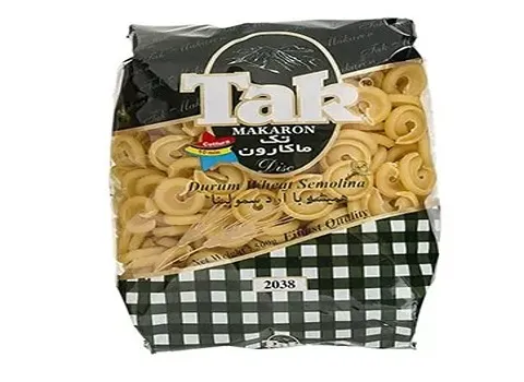 ماکارونی تک 500 گرمی با شکل های مختلف مانند صدفی پروانه ای اسپاگتی حلزونی مارپیچ و لوله های بزرگ و کوچک تولید می شود.
