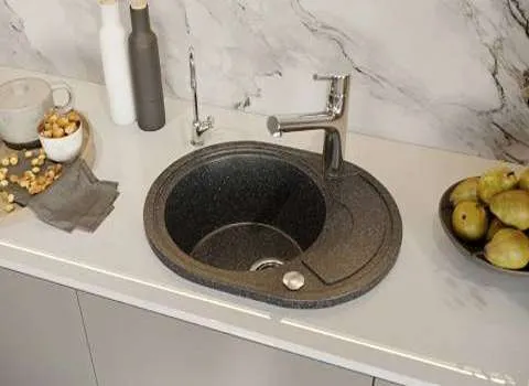 سینک ظرفشویی گرانیتی کوچک، معمولاً از یک ترکیبی از سیلیکا و رزین گرانیت تشکیل شده است، این ترکیب به سینک ها قدرت و مقاومت فوق العاده ای می دهد، ظاهری مات و طبیعی دارند و در رنگ ها و طرح های مختلفی در دسترس هستند.