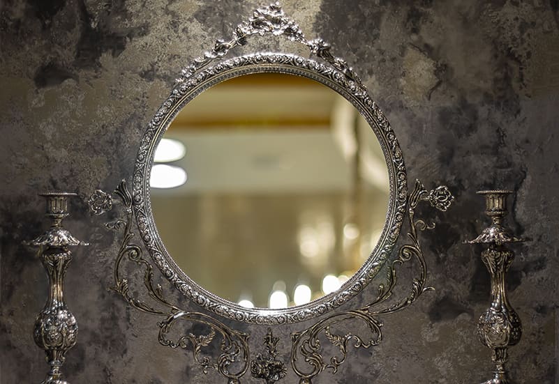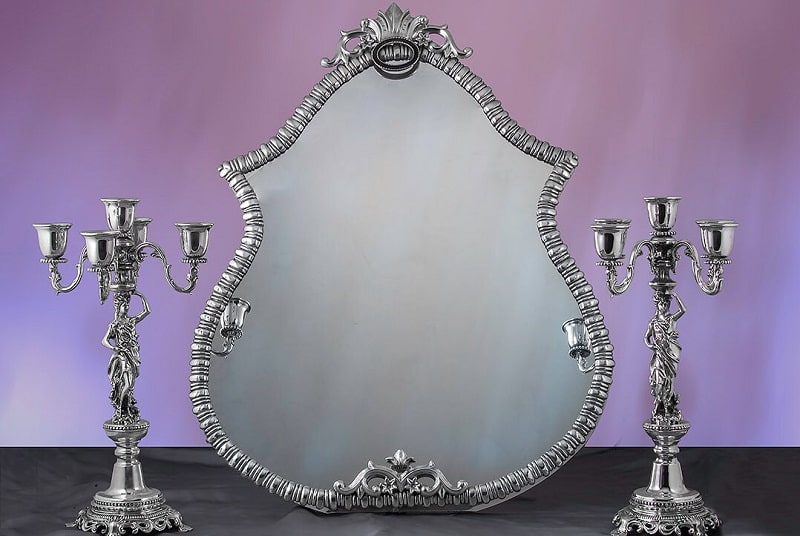 اگر می خواهید منزل و فضای خود را به فضایی شیک و زیبا تبدیل کنید می توانید از آینه شمعدانی که با نقره ساخته شده است استفاده نماید. آینه در شکل و ابعاد مختلفی ساخته می شود که می توان به نوع مربعی آن که تضاد زیبایی با شکلی منحنی و شمعدان های بسیار ظرزیف و زیبا که چشم هر بیننده ای را به خود جذب می کند اشاره نمود.