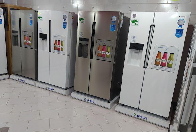 تنوع تولید یخچال ساید اسنوا باعث شده است تا سهم بزرگی از بازار را در اختیار بگیرد. یخچال ساید تشکیل شده است از دو یخچال به هم چسبیده که یک طرف آن کاملاً فریزر و یک طرف یخچال می باشد که حجم زیادی از خریدها و مصارف خانگی را در خود جای می دهد.