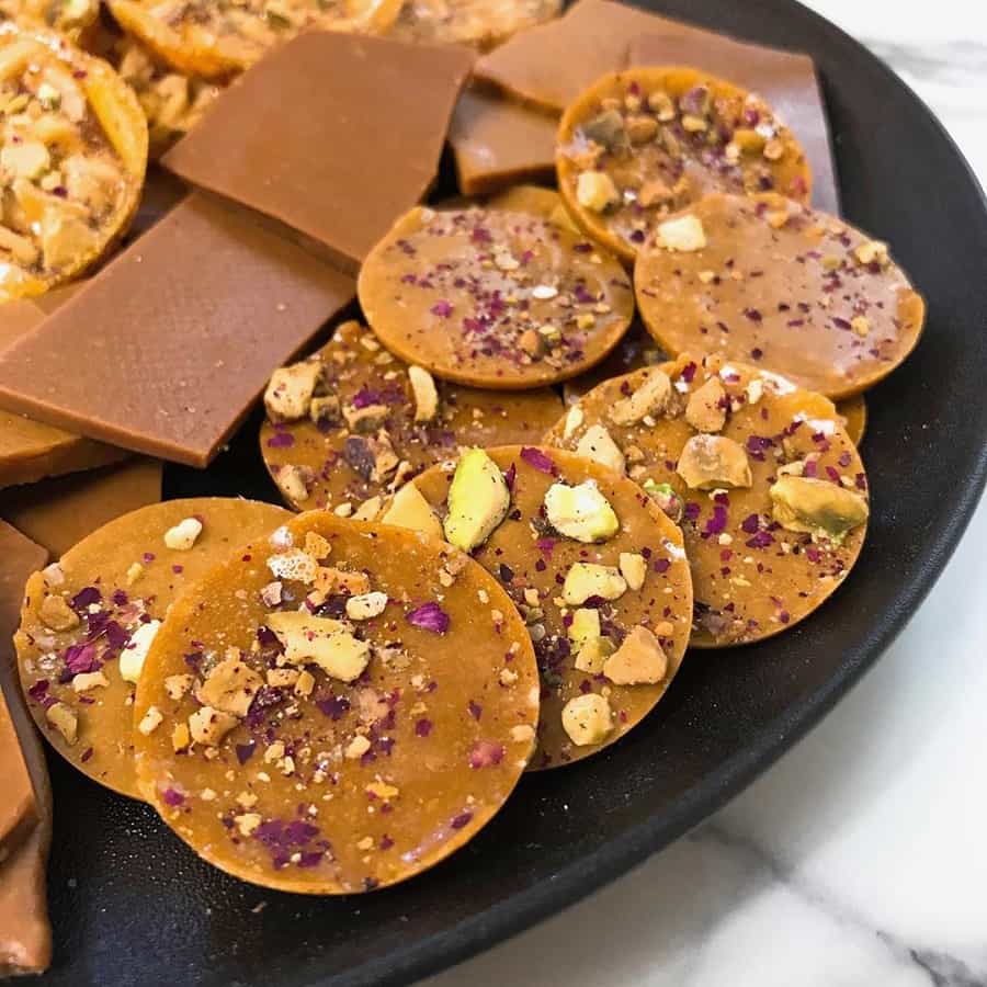 یک سینی فلزی بردارید که نیاز به چرب کردن نداشته باشد با قاشق از مواد بردارید و روی سینی قرار دهید باید سریع کار را انجام دهید پس از سرد شدن از روی سینی فلزی جدا کنید و نوش جان کنید.